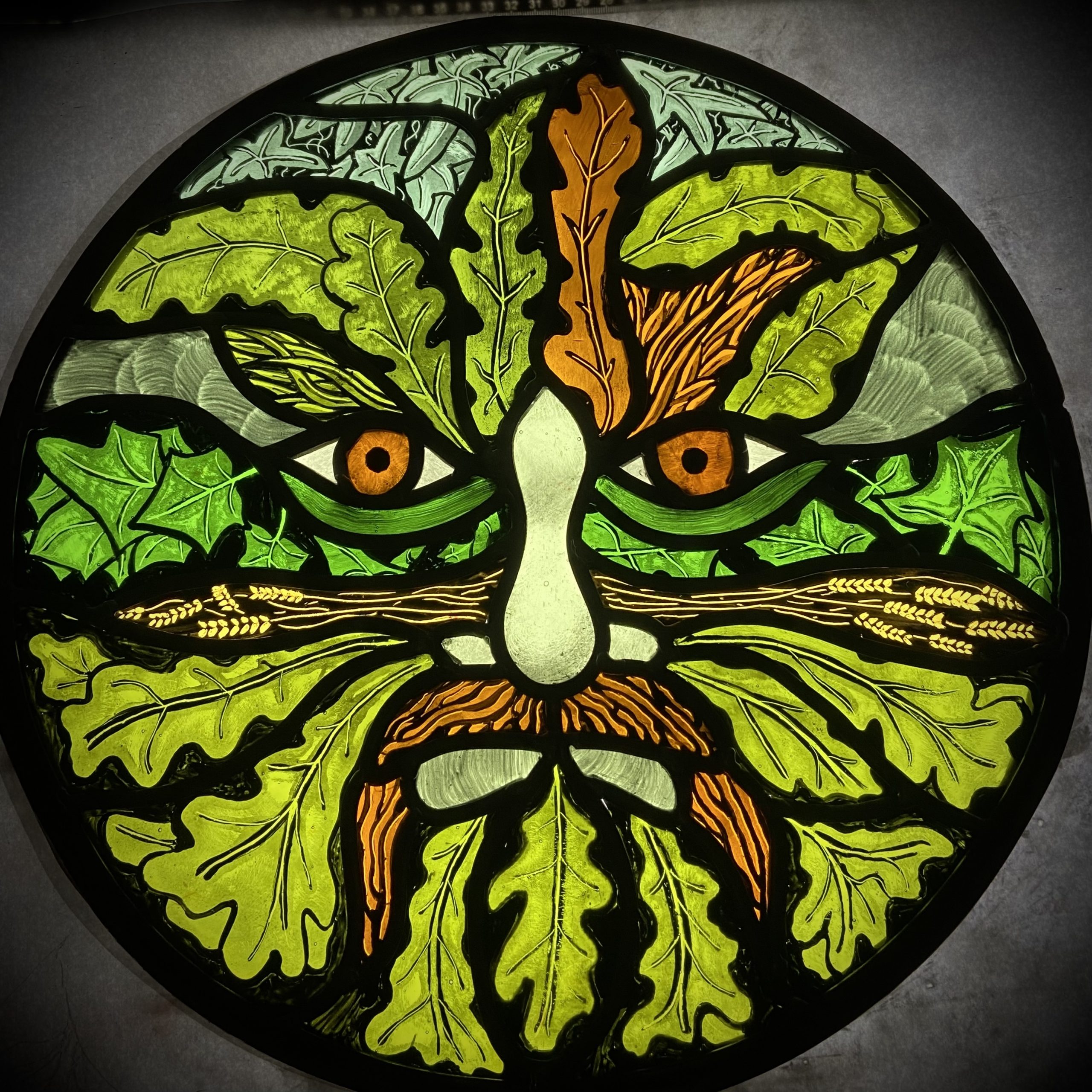 Ned’s works enhance natural light transformed by intense and subtle colour, while incorporating hand-painted textures and details. Combined with the organic flow and interplay of the lead lines, his panels are satisfying as stand-alone artworks, and striking when installed in windows and doors.