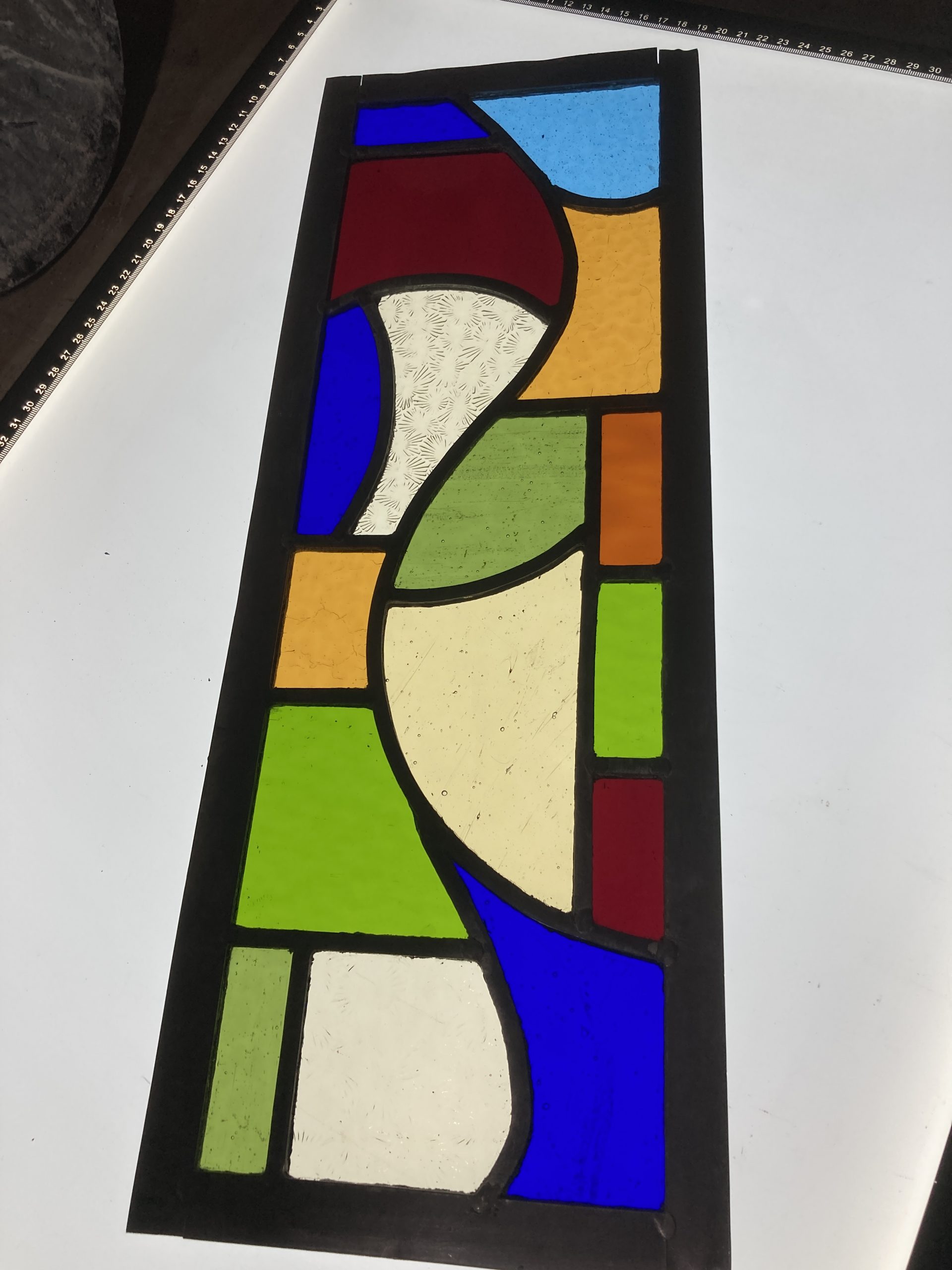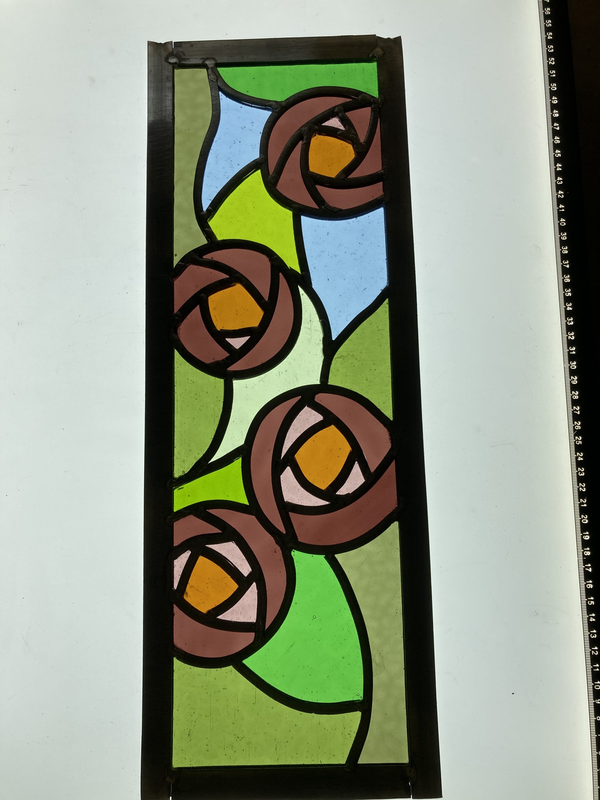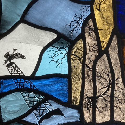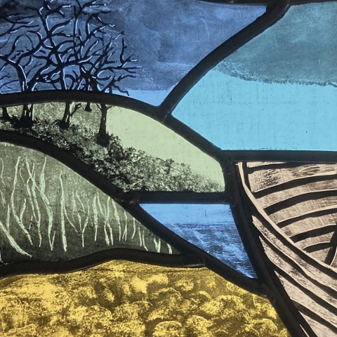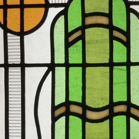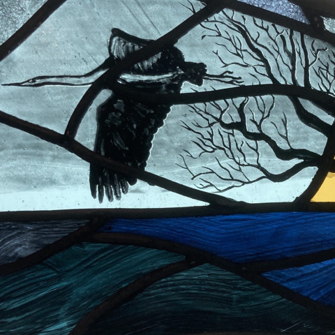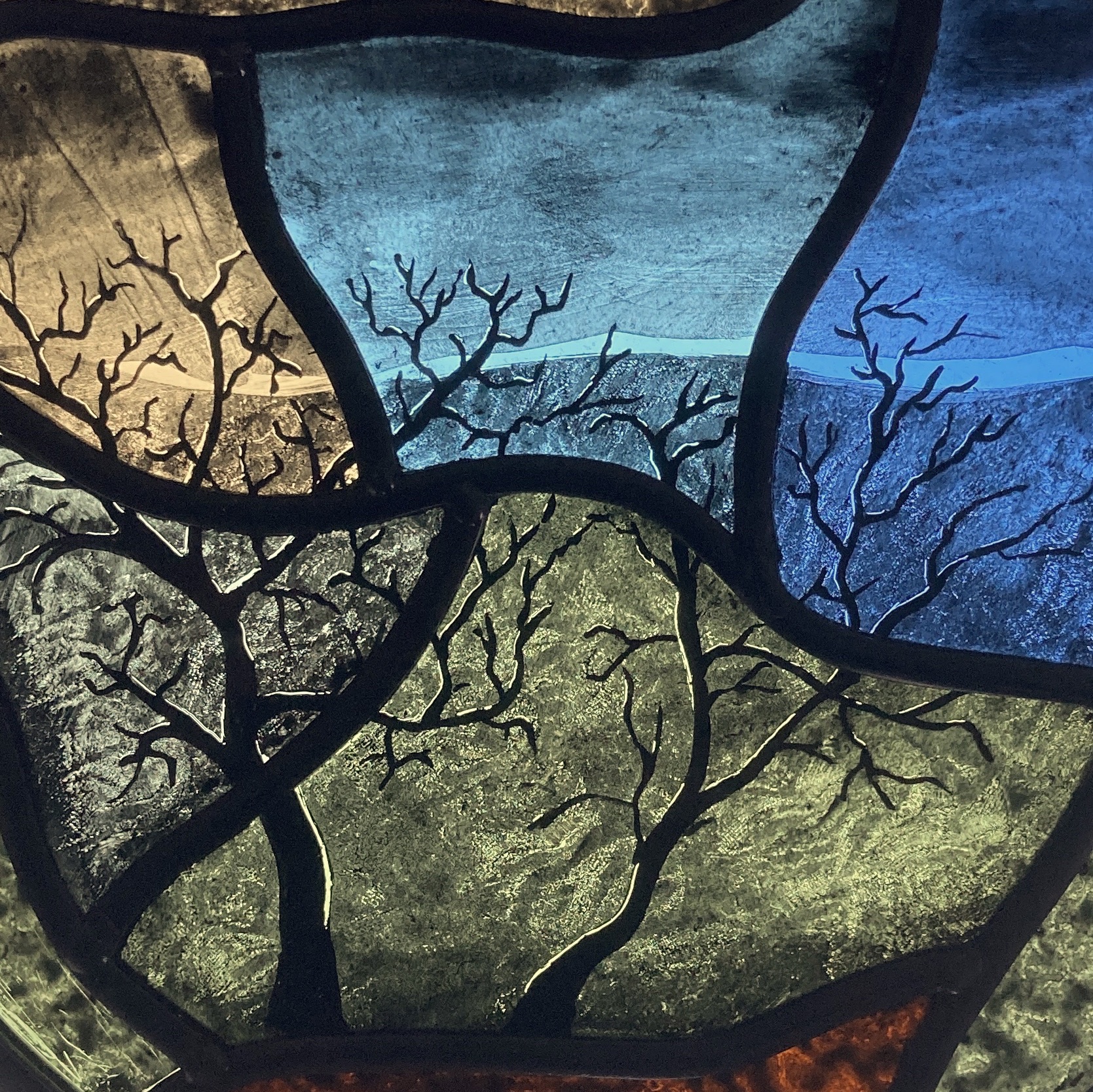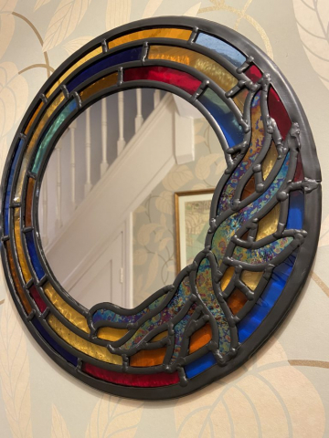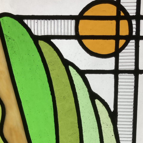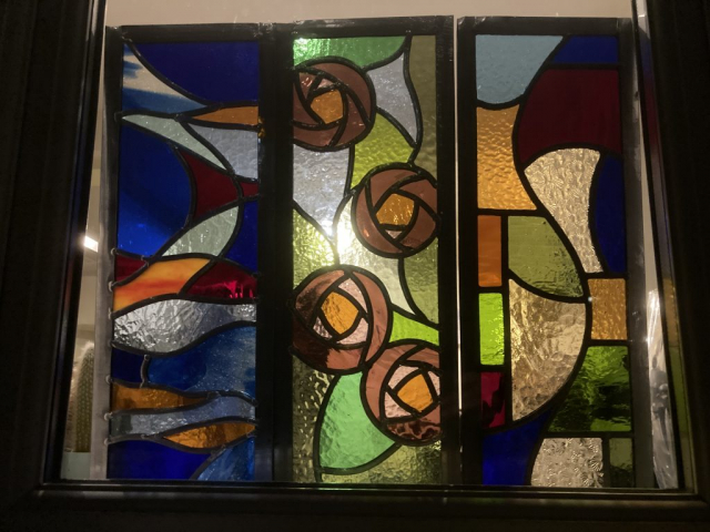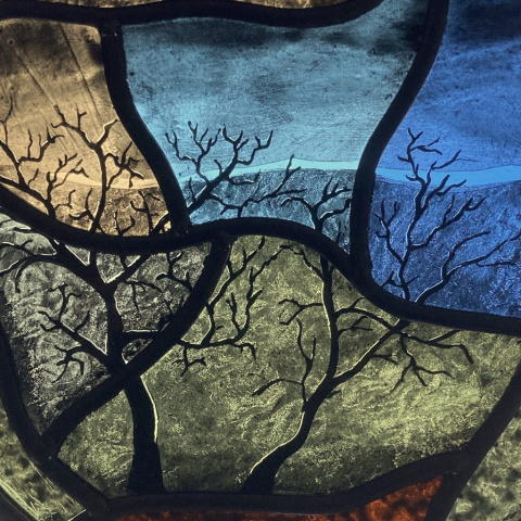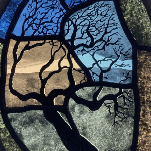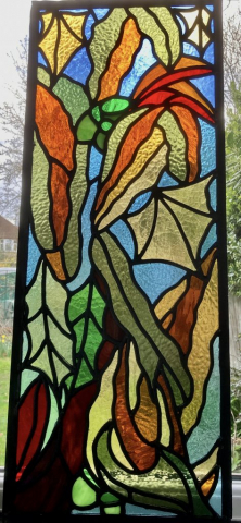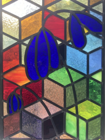 Ned’s works enhance natural light transformed by intense and subtle colour, while incorporating hand-painted textures and details. Combined with the organic flow and interplay of the lead lines, his panels are satisfying as stand-alone artworks, and striking when installed in windows and doors.